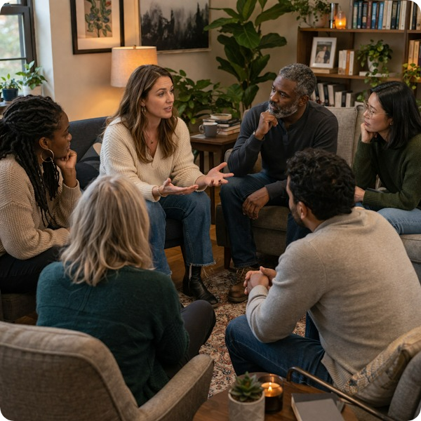 Gently facilitated by values-aligned mental health professionals, our Circles offer a private, safe, and structured environment.